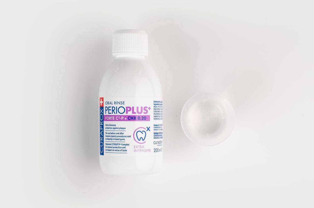 Curaprox offers a line of Perio plus mouth rinses which caters to every patient. The range includes Perio plus Balance, Perio plus Regenerate, and Perio plus Forte all of which contain chlorhexidine, sodium fluoride, CITROX®, and PVP-VA. Each active ingredient is included to improve and protect patients’ oral health.