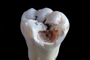 Caries-related irreversible pulpitis is caused by the progression of bacterial infection and inflammation that decays into the dental pulp which can lead to the eventual need for root canal treatment.[ii] Other causes of toothache include cracked teeth, occlusal trauma,[iv] exposed dentine, and more.[v]