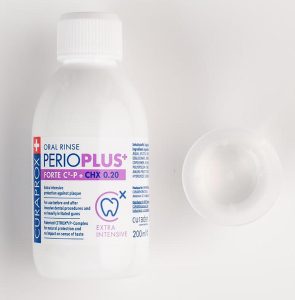 Perio plus Forte has the highest chlorhexidine content at 0.2%. This powerful concentration means it is only suitable for short term use (3-7 days) on patients requiring intensive care before or after dental treatments. It fights plaque build-up in a short, sharp blast, reinforcing gingival health and leaving a highly protective film over the teeth and oral mucosa. This reduces halitosis-producing bacteria too.[ii]